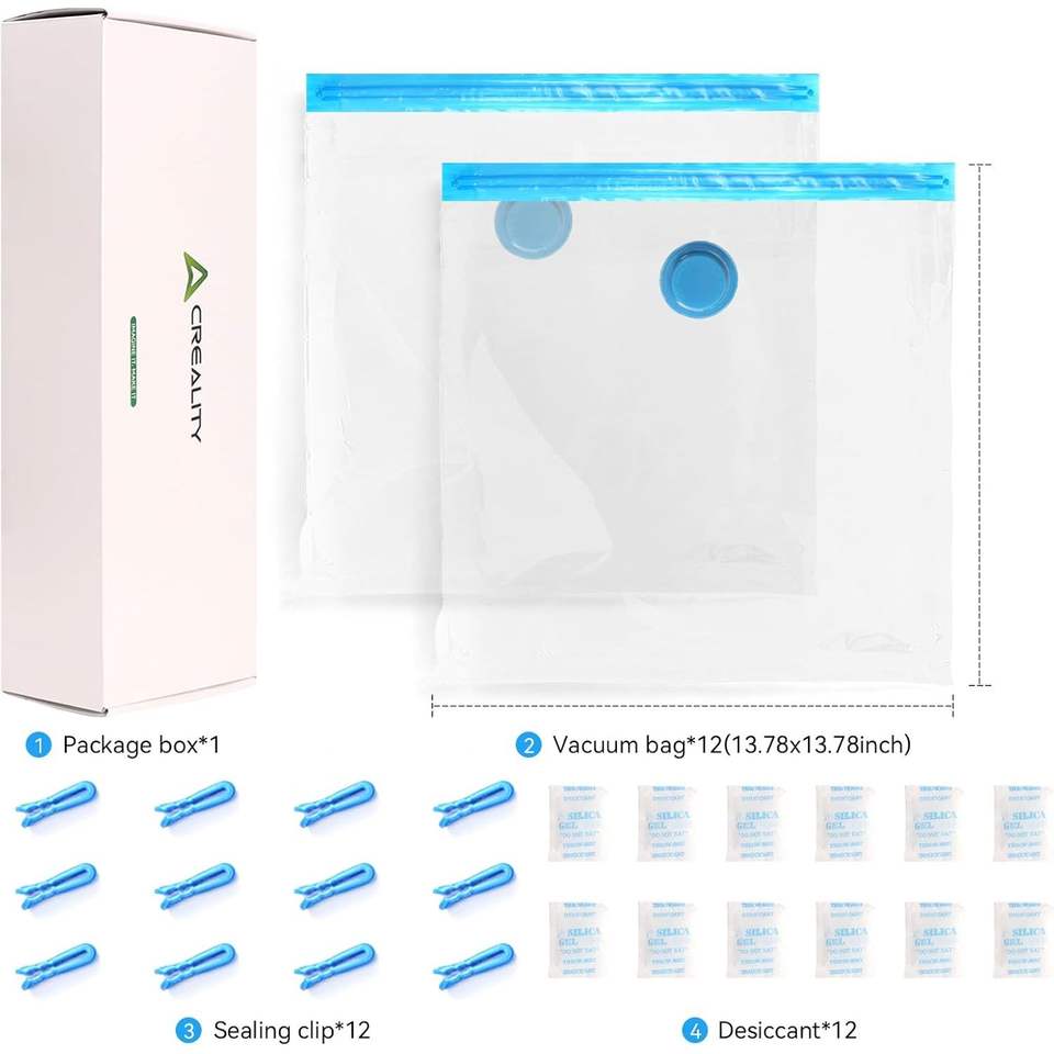 Impresora 3D Creality, 12 bolsas de almacenamiento al vacío para filamento reutilizables de 35x35 cm, multiusos, 1 kg, B0DG5VRHF2