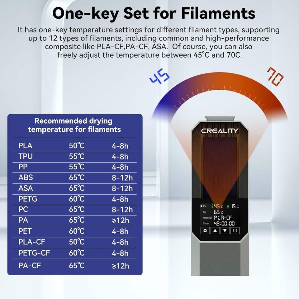 Accesorios para impresora 3D Creality-PI Dry Box 360 ° Secador de calefacción PTC 45 ℃-70 ℃ Y 0-48h Deshidratador de filamentos Caja secadora de actualización para