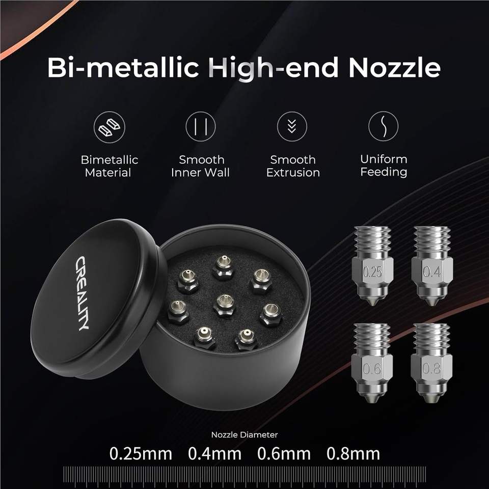 Kit de Boquillas para Impresora 3D Creality, 0.25/0.4/0.6/0.8mm, Acero Inoxidable, Alta Conductividad Térmica