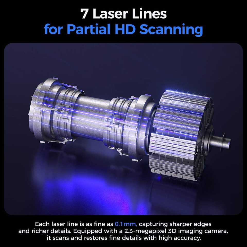 Escáner 3D Creality Raptor Pro de Grado Metrológico, Precisión de 0.02 mm, 22+7 Láseres Azules, USB, Aluminio, Ingeniería Automotriz, Modelado 3D