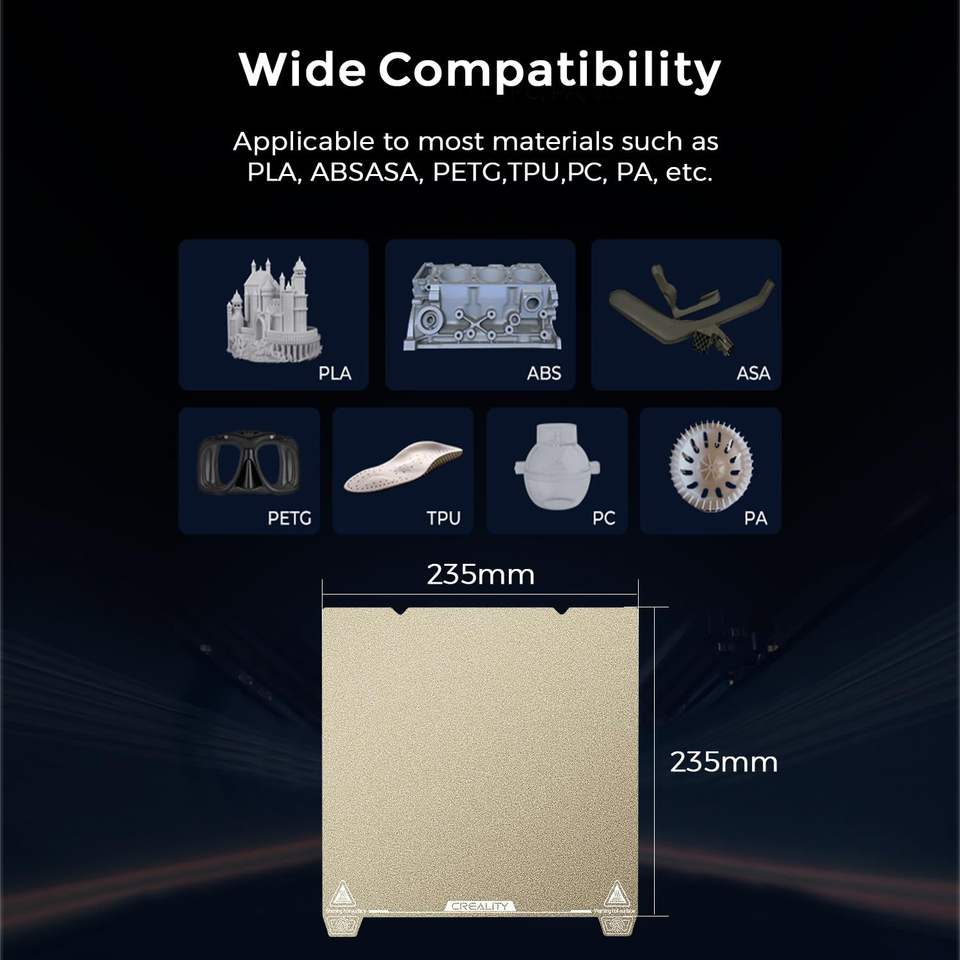 Placa de Construcción Creality Ender 3 S1 Pro, Lámina PEI de 235x235mm, Superficie Magnética Flexible con Resorte