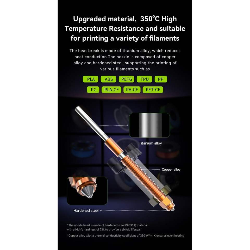 Kit de Hotend con Bloque de Calentamiento Cerámico Creality K2 Plus Upgrade, Hotend Totalmente Metálico para Impresora 3D Serie K2