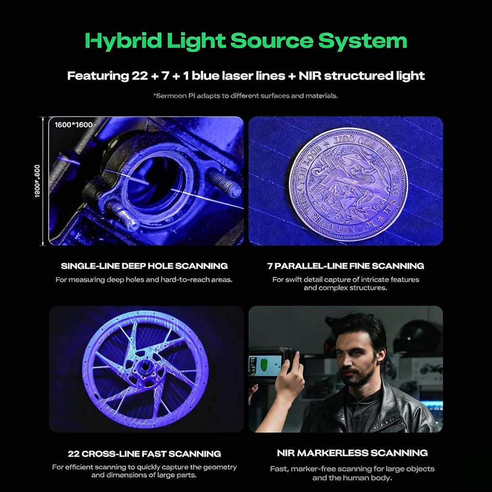 Escáner 3D Sermoon P1, Láser Azul Infrarrojo Inalámbrico, Pantalla Táctil de 6 Pulgadas, para Escaneo Automotriz, en Stock con SDK