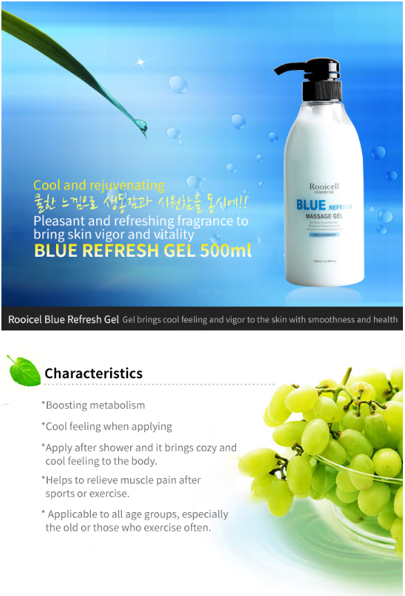 Crema corporal ROOICELL Blue Refresh Gel de masaje 500ml Body Cool Therapy Masaje corporal y facial Hidratante y cuidado de la elasticidad