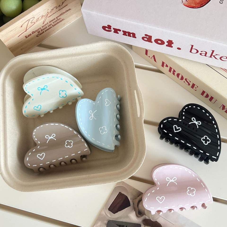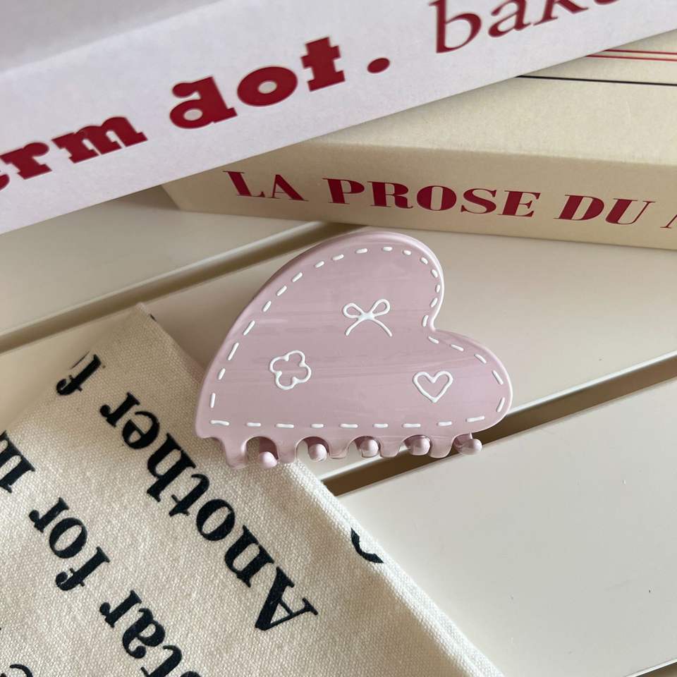Pinza para el pelo pintada a mano color crema con bonito corazón, elegante clip para moño