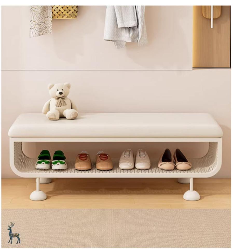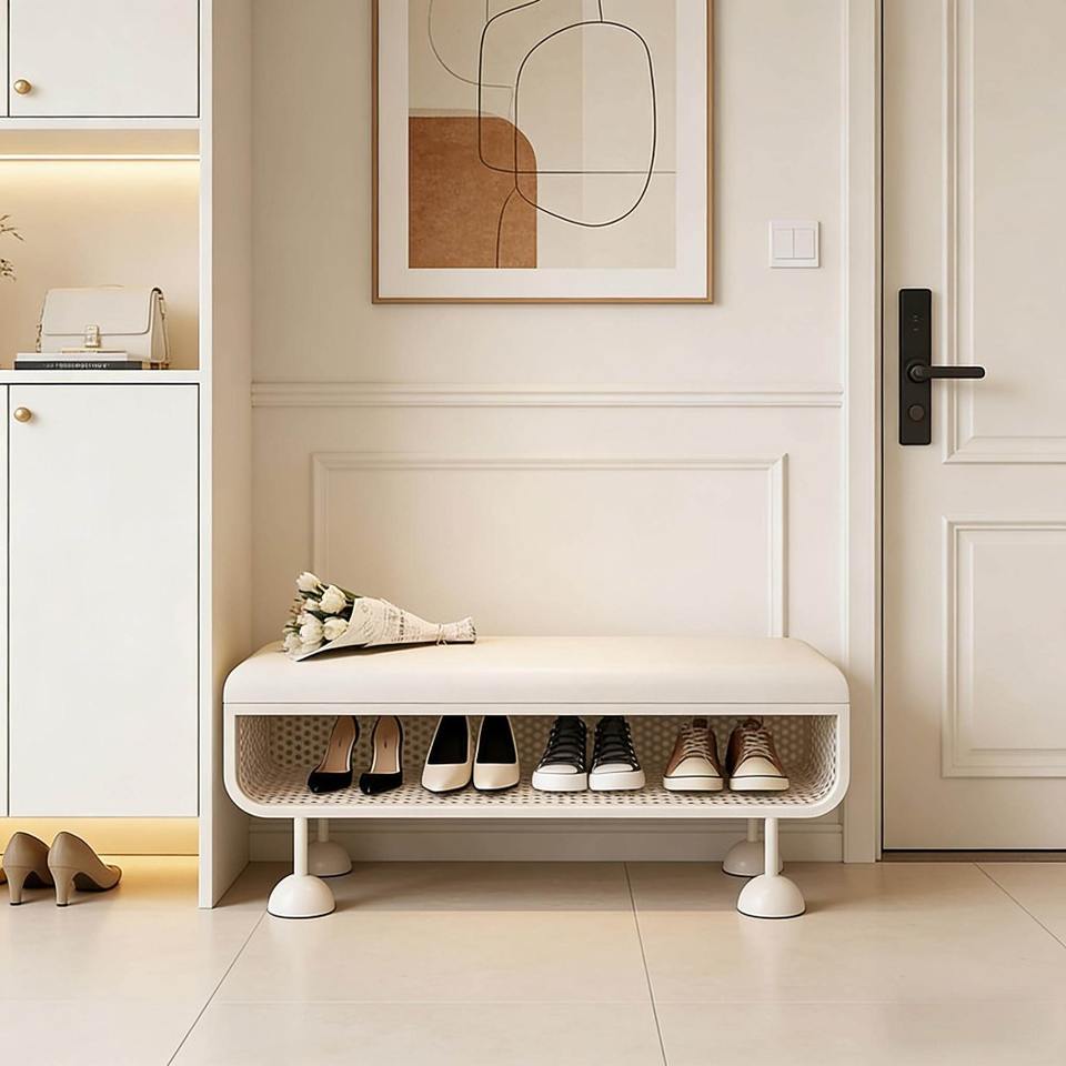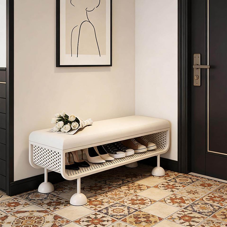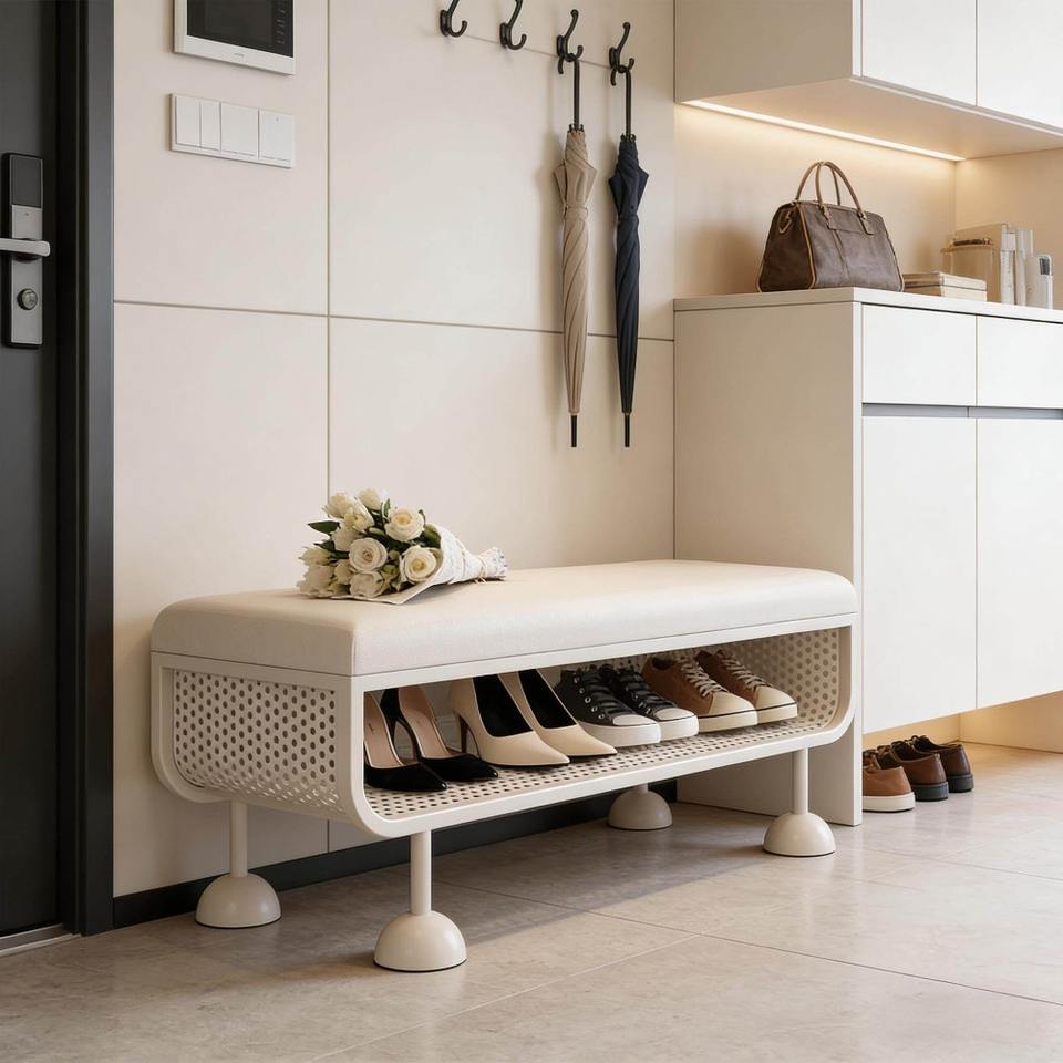 Banco de Metal Color Crema para Entradas de Casa, Banco de Entrada de Lujo Ligero con Diseño que Ahorra Espacio para Sentarse y Calzarse Zapatos
