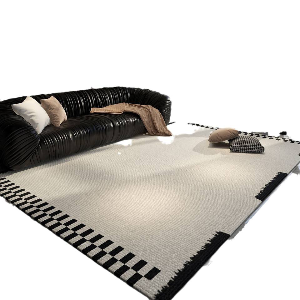 Alfombra Rectangular Color Crema con Diseño de Rayas, Tejida a Máquina, Material Combinado, para Sala de Estar, Dormitorio, Uso Doméstico