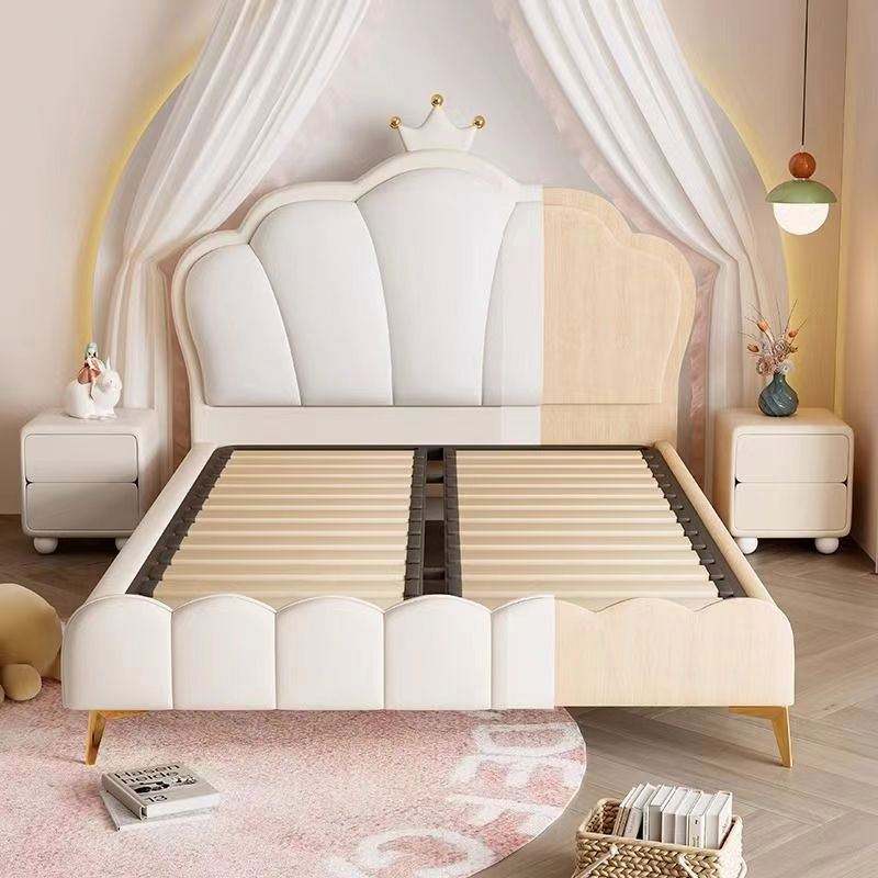 Cama Infantil Tipo Sofá Cream Crown Princess para Niñas, Diseño Moderno y Minimalista con Cabecera Suave y Cómoda de Madera