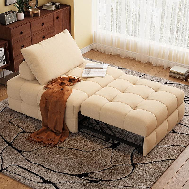 Sofá de Tela Estilo Cream Puff, Sofá Cama Individual Multifuncional Extra Largo