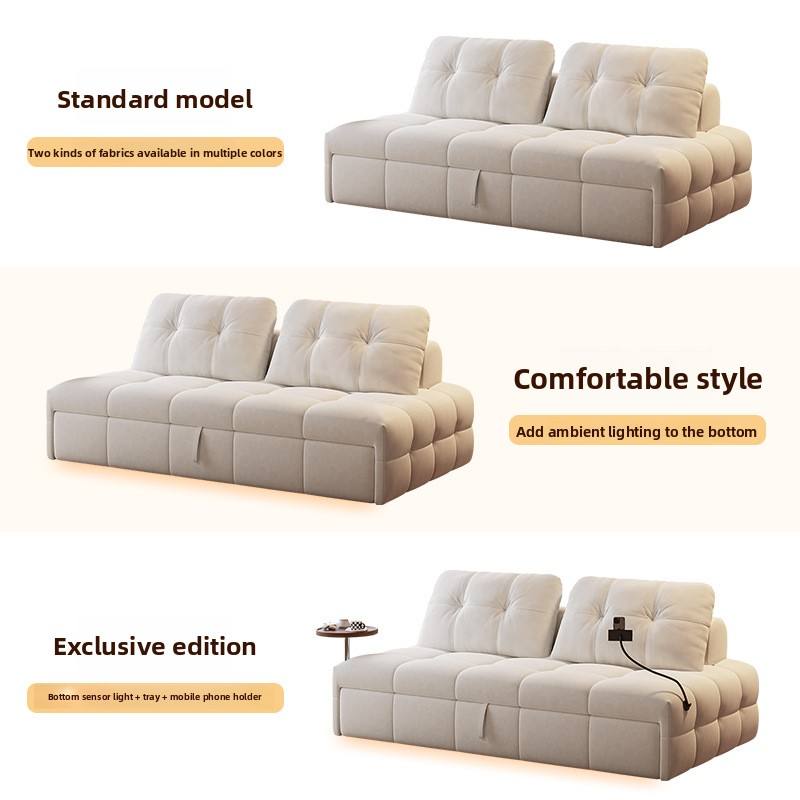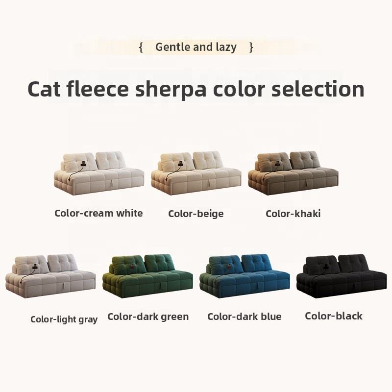 Sofá Cama Estilo Crema, Sillón Individual Plegable, Sofá Puff de Lana de Cordero para Personas Perezosas, Sofá de Metal para Sala de Estar de Apartamentos Pequeños