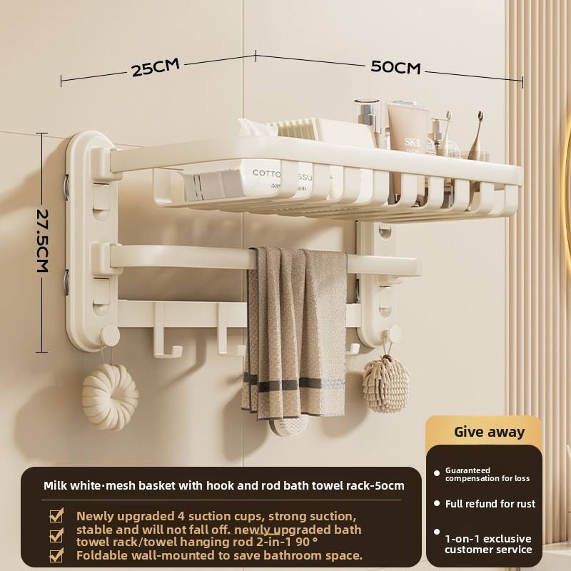 Toallero Plegable Blanco Crema, Toallero de Pared con Taladro - Instalación sin Perforaciones