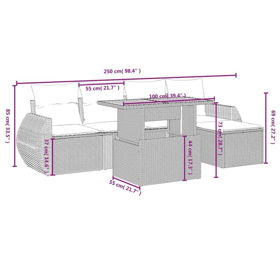 Juego de Sofás de Jardín Color Crema, Muebles de Ratán para Exteriores, 4 Plazas, Diseño Contemporáneo
