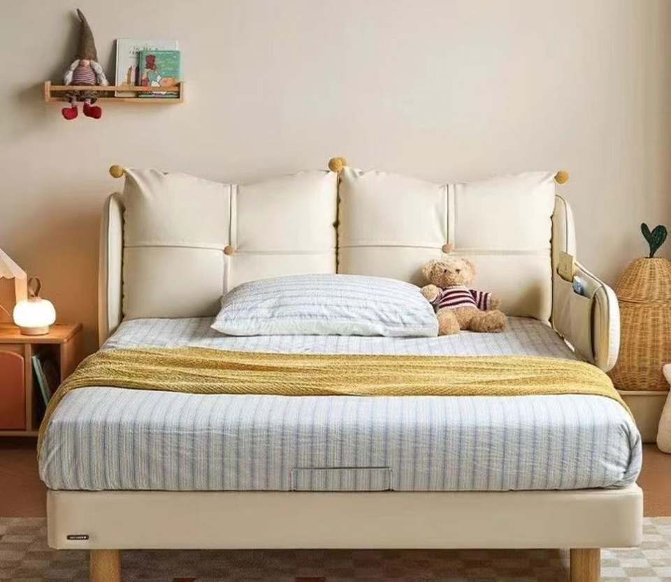Cama infantil Cream Wind, cama de barandilla, niños y niñas, cama individual, habitación infantil, unidad pequeña, muebles de dormitorio