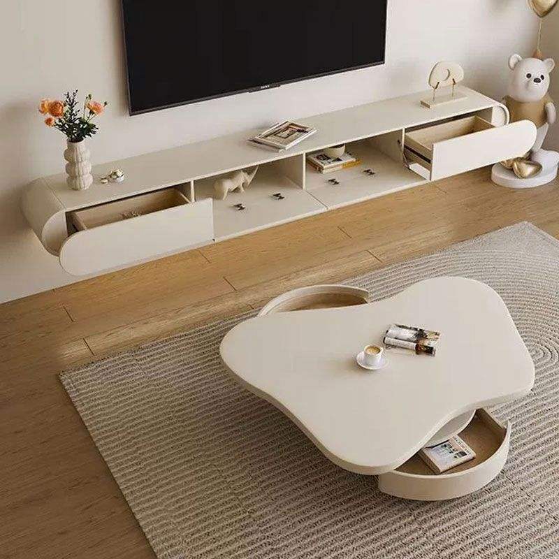 Mueble de TV Flotante Estilo Crema 2026, Mueble de Pared, TV Suspendida