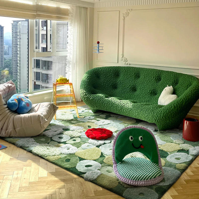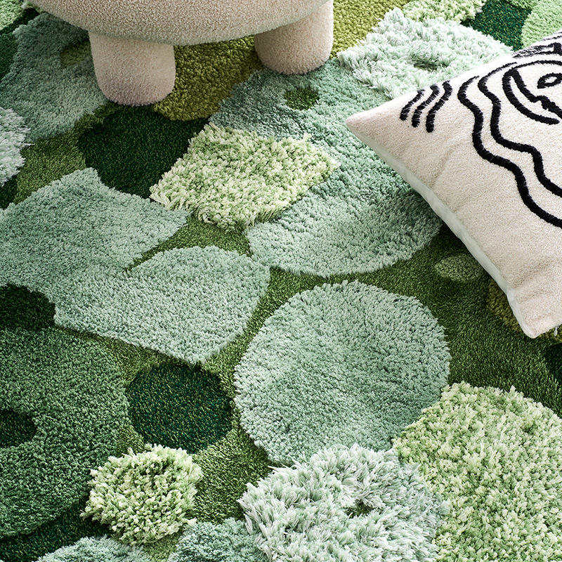 Alfombra de Lujo Estilo Bosque, Rectangular, Resistente a las Manchas, Moderna, Verde, para Sala de Estar, Dormitorio, Apta para Pies Descalzos