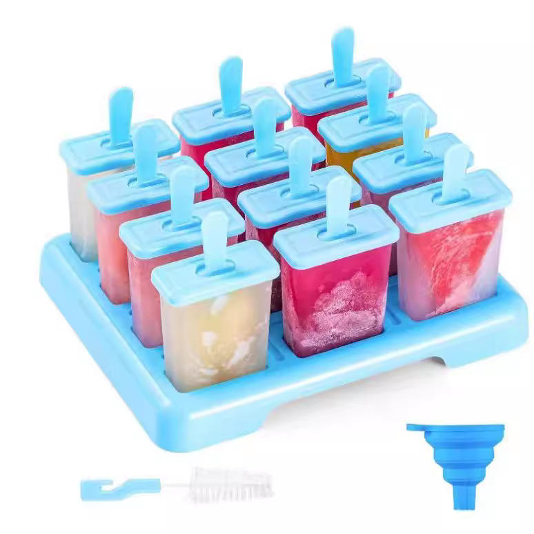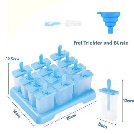 12 grids ice cream mold + brush + funnel, blue
