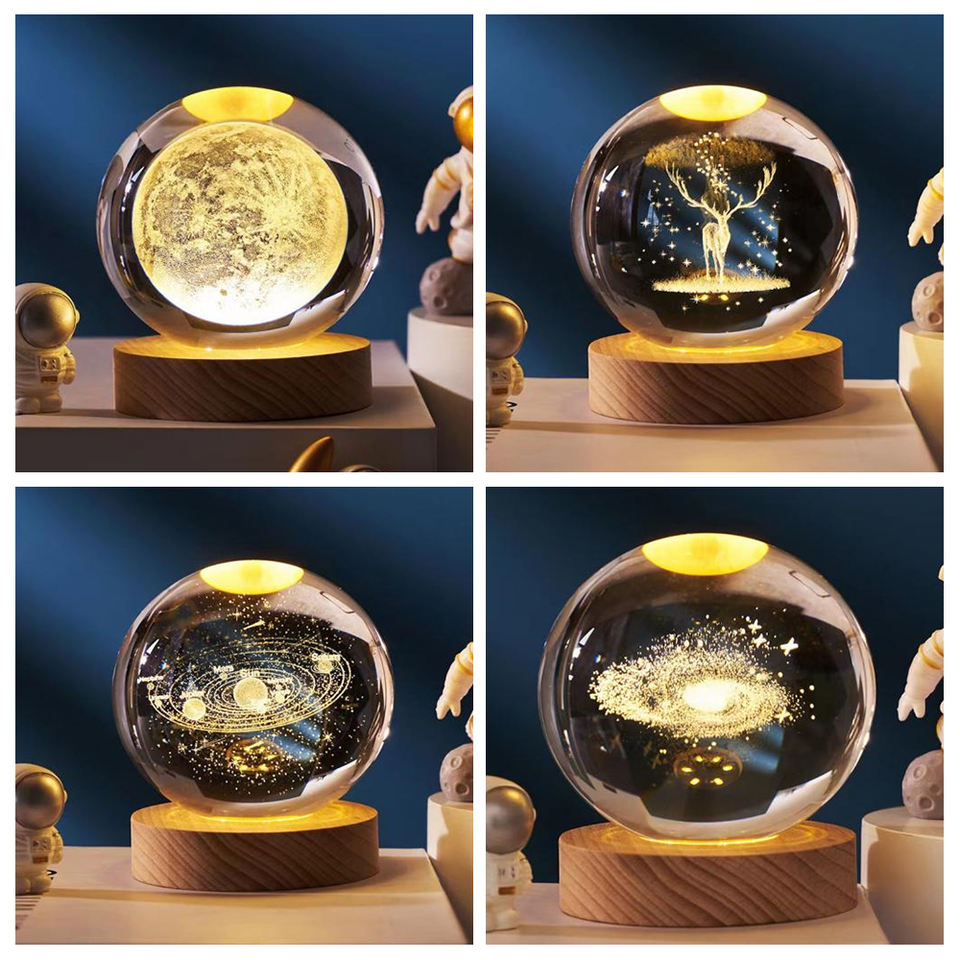 Sistema Solar Visual de Visualización de Cristal 3D Creativo, Nebulosa de Saturno, Luna, USB RGB, Luz de Regalo Ambiental Colorida, Lámpara de Mesita de Noche