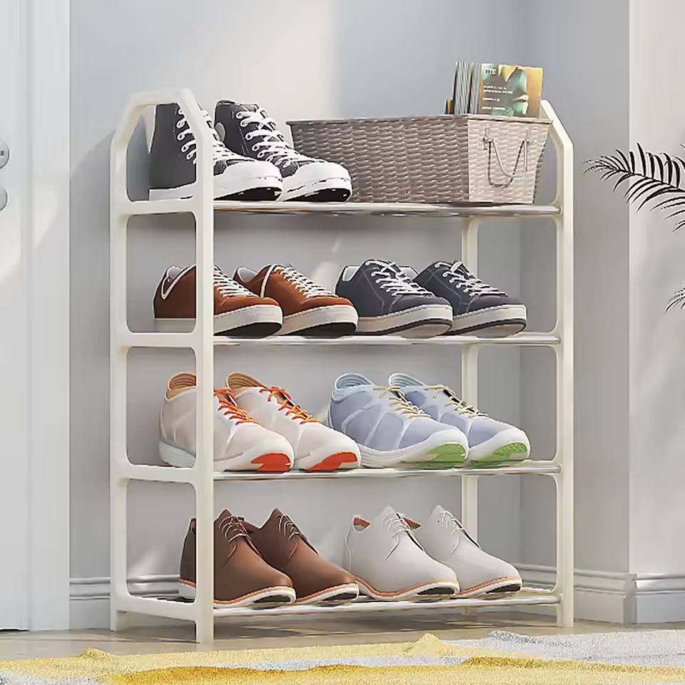 Zapatero de plástico creativo de 4 pisos, armario de almacenamiento de puerta para el hogar o el dormitorio para armario o la cocina, se requiere montaje