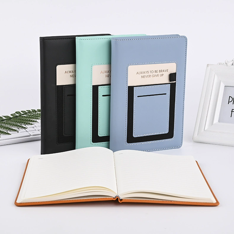 Agenda de Cuero Pu A5 Personalizada Creativa, Agenda de Tapa Dura, Diario de Cuero PU con Portalápices, Bolsillo para Móvil, Logotipo Personalizado