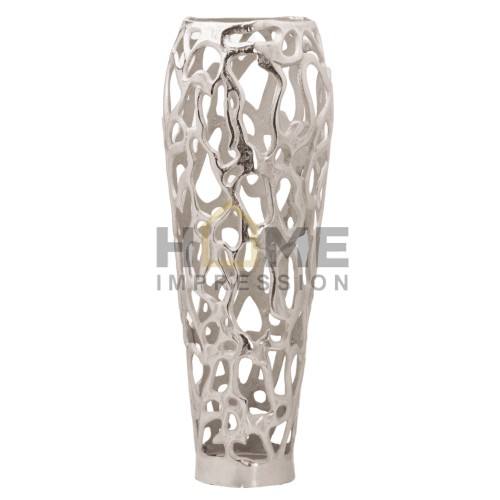 Florero Chapado en Plata Fundida de Aluminio, Jarrón de Metal de Diseño Elegante, Colección Artesanal Hecha a Mano India para Decoración del Hogar