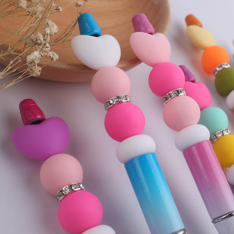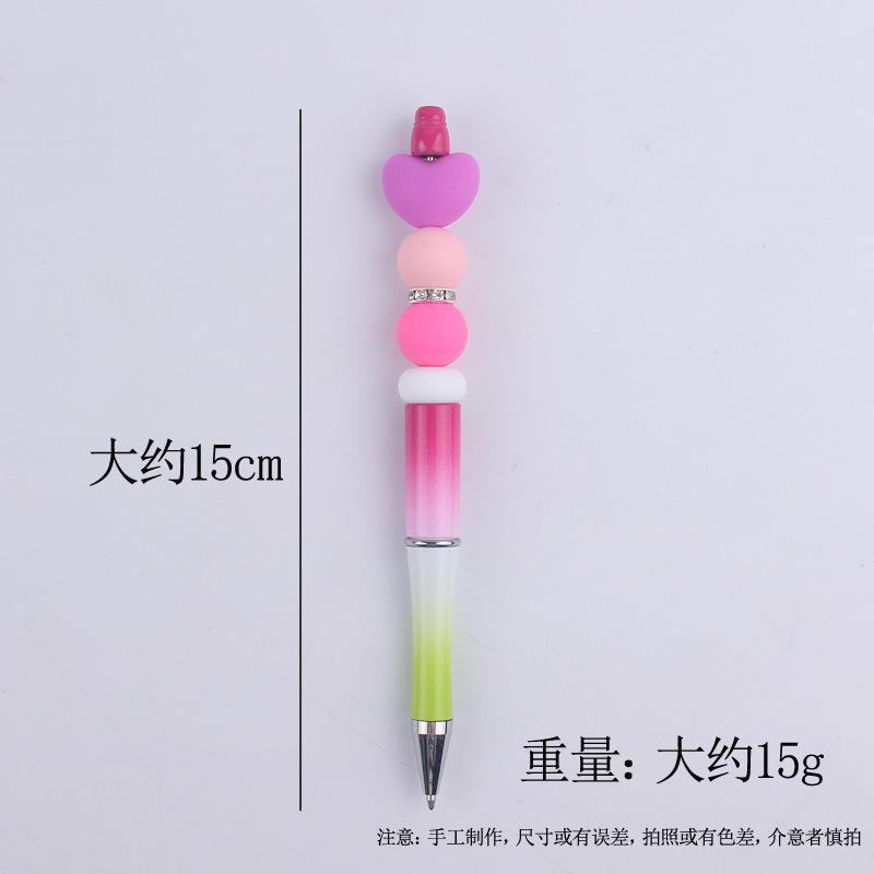 Bolígrafo Creativo con Degradado de Color, Cuentas de Silicona en Forma de Corazón, Recarga Giratoria, Bolígrafo Hecho a Mano con Cuentas, Material Plástico para Oficina y Escuela