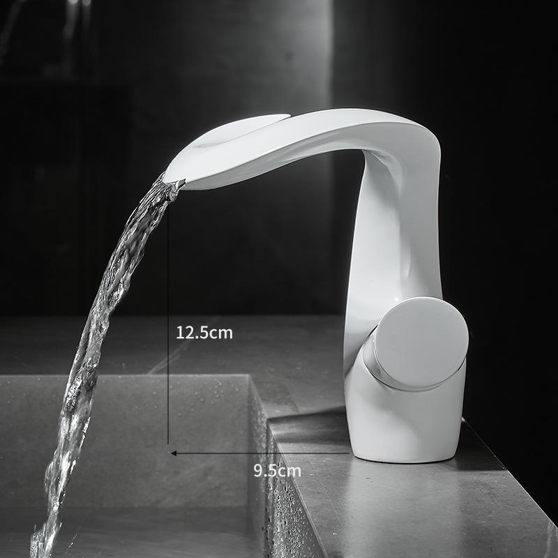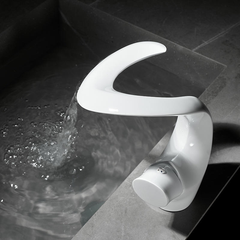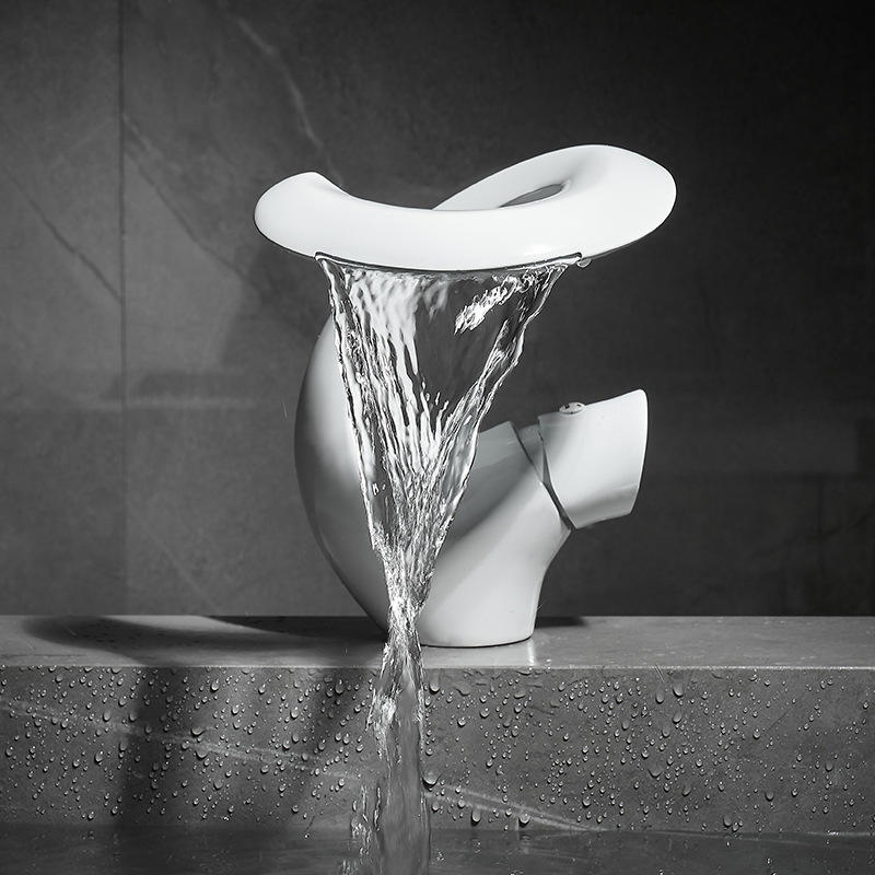 Grifo de latón creativo contemporáneo de un solo manípulo y un solo orificio para lavabo de encimera, grifo cascada con válvula de cerámica para grifos de baño