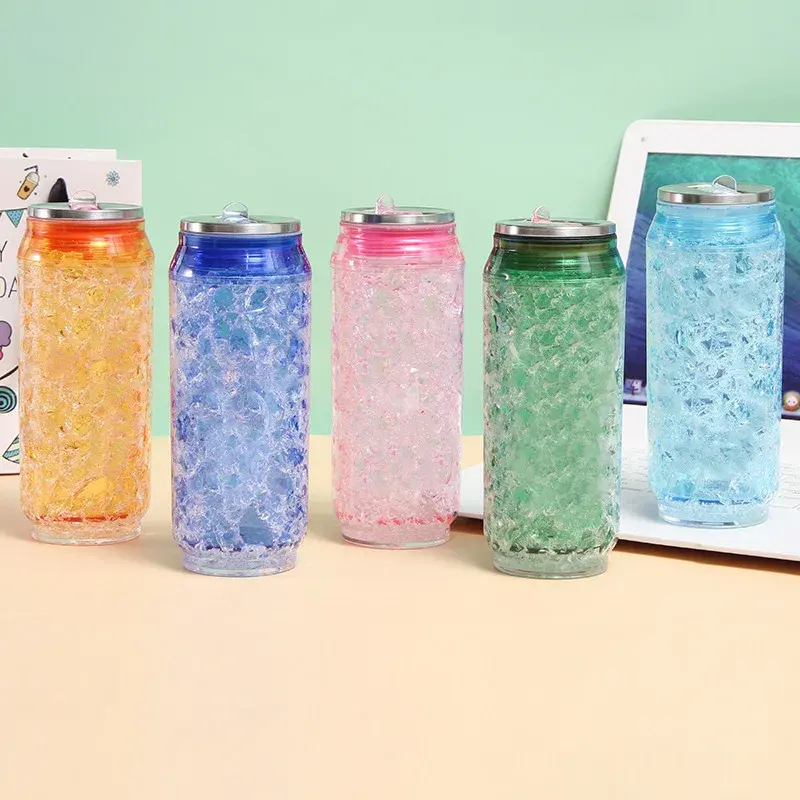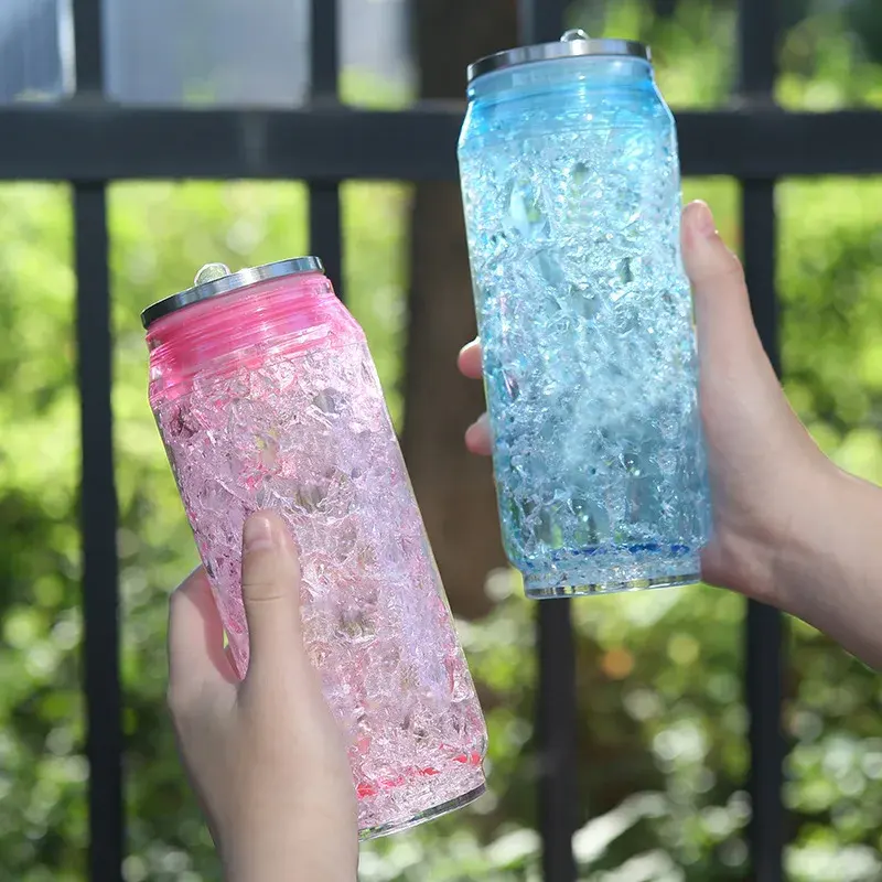 Latas creativas vasos de agua con pajita sin BPA de doble capa de plástico verano Cola botella de hielo triturado deportes al aire libre taza para beber
