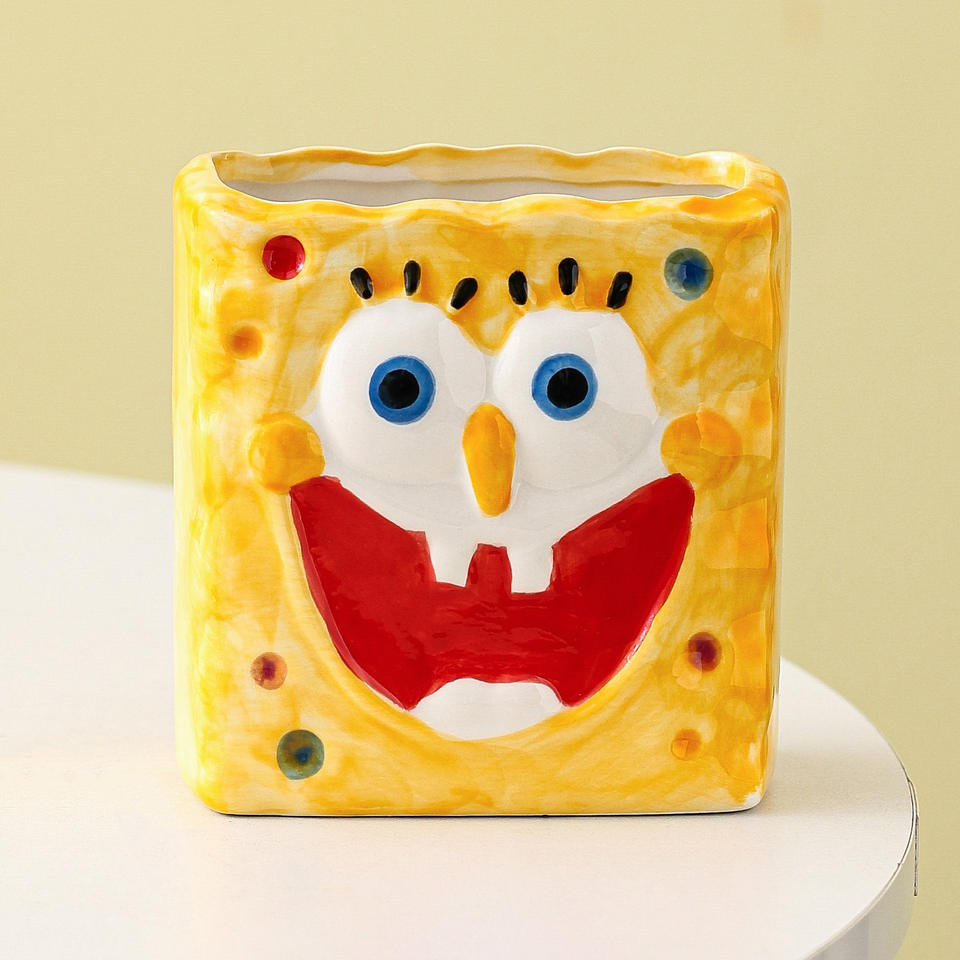 Portalápices de Cerámica con Diseño Creativo de Dibujos Animados, Estilo Americano, Hecho en Fujian, Caja de Almacenamiento para Cepillos de Dientes, Brochas de Maquillaje, Bob Esponja
