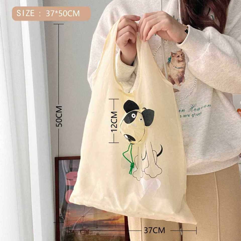 Bolsa de Compras Plegable con Colgante en Forma de Perro de Dibujos Animados, Linda Bolsa de Mano de Poliéster Portátil con Logotipo Personalizado