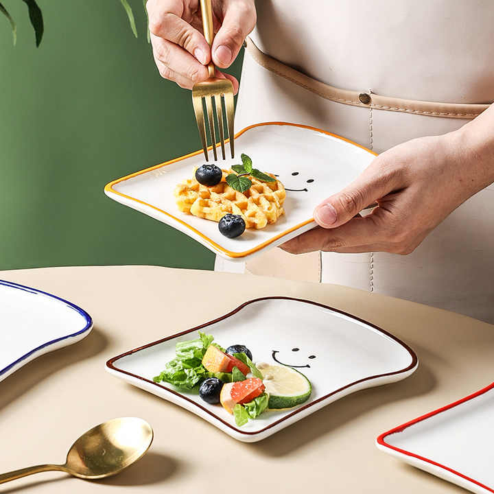 Creativo dibujos animados Emojis cara sonriente 7 "Cerámica pan hornear Pan Hotel restaurante contraste Color gres plato para hornear plato
