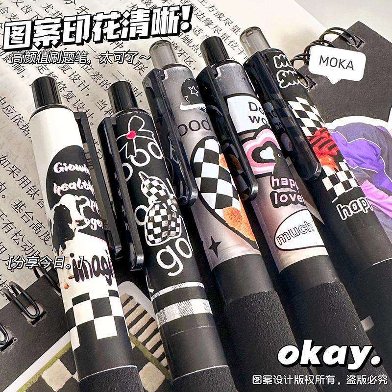 Dibujos animados creativos Fat Head Press neutral pen Student 3 sets American retro ST Head Cepillo de secado rápido Problema Black Water pen