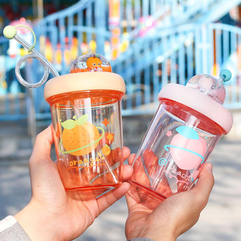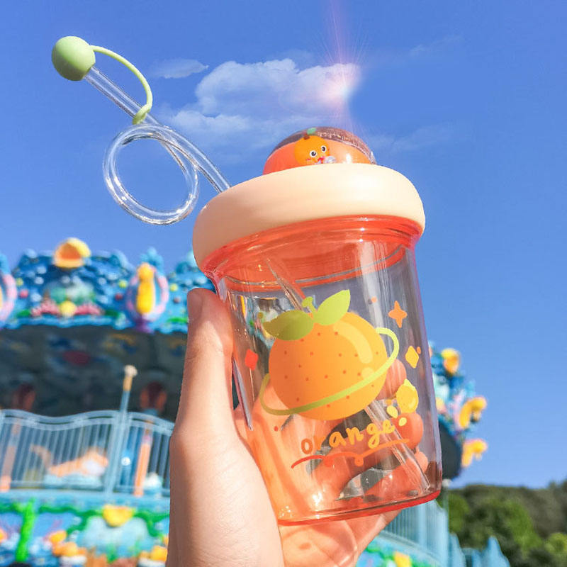 Taza de paja de dibujos animados para niños, vaso de agua de plástico