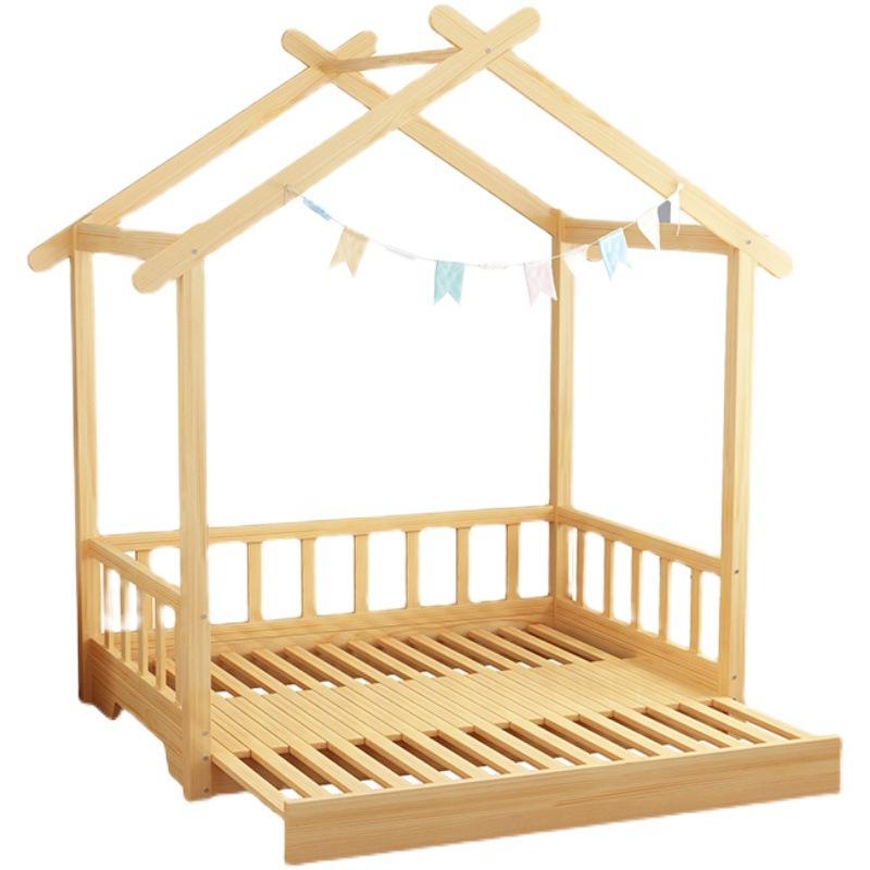 Cama Retráctil de Madera Maciza para Niño y Niña, Cama Retráctil Creativa, Casa Pequeña Individual