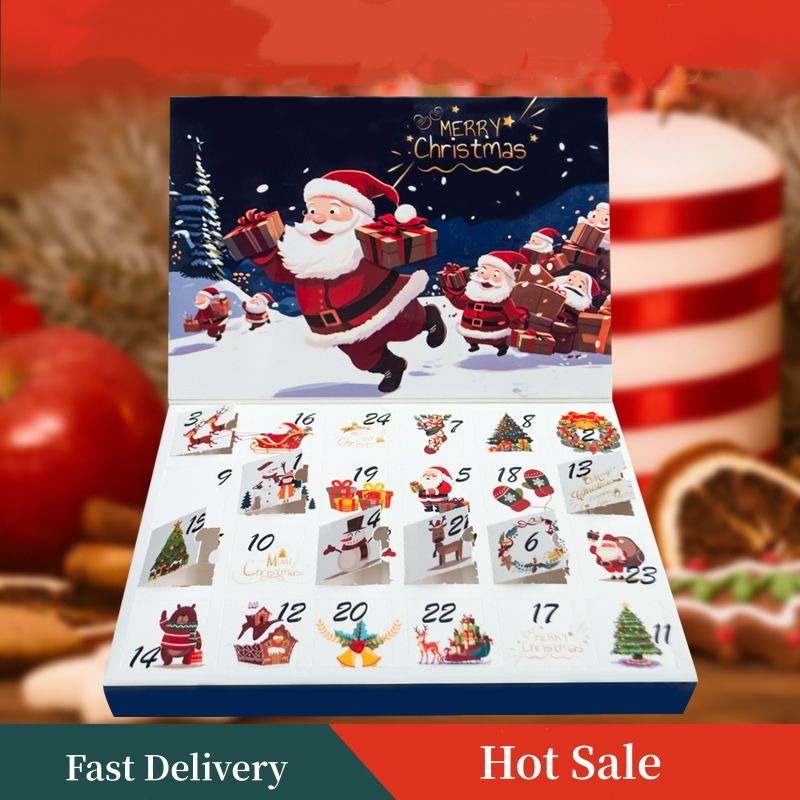 Cajas de regalo con forma de libro de Navidad creativas, caja de embalaje de regalo sorpresa de 24 rejillas, cajas ciegas de Cuenta regresiva con tapa abatible de Navidad, embalaje