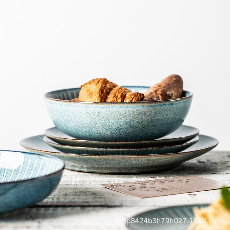 Plato de Cerámica Clásico Creativo, Plato de Porcelana Vintage Japonés para Desayuno, para Fiestas, Vajilla Sencilla y Elegante para el Hogar