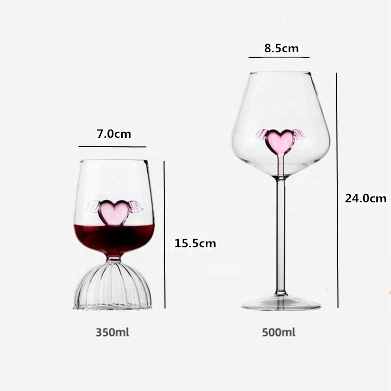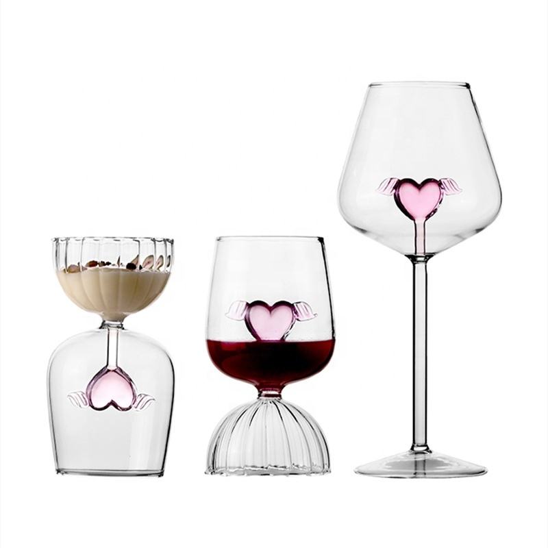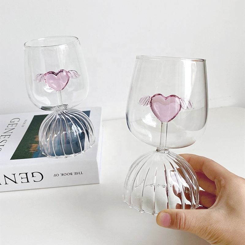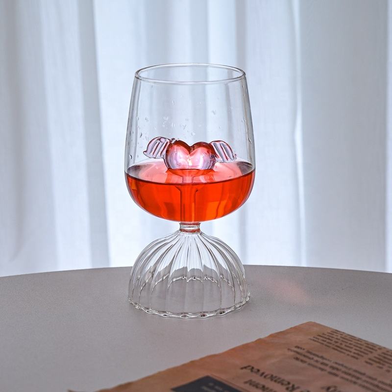 Copa de cristal multifuncional de borosilicato alto transparente creativo 3D dulce corazón encantador copa de vino con alas para el Día de San Valentín