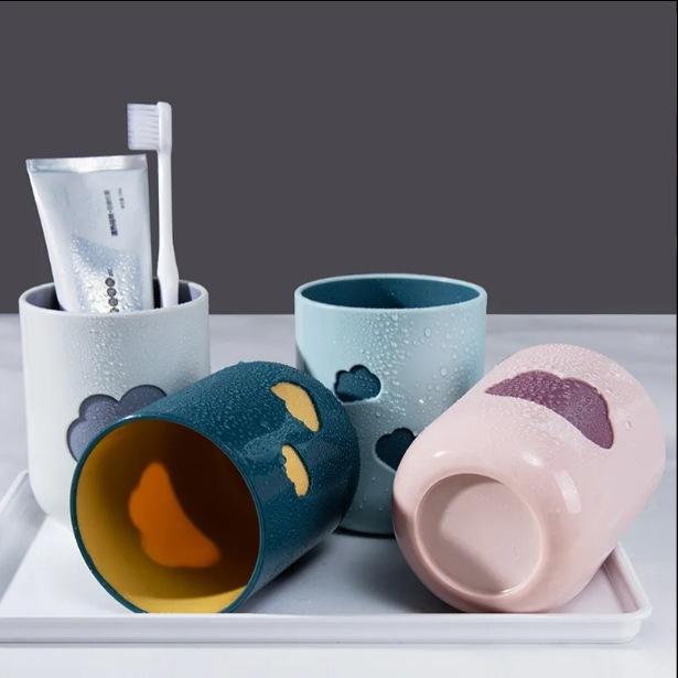 Creative Cloud Taza de enjuague de doble capa, taza portátil de viaje para enjuague bucal para niños y parejas, azul claro, azul oscuro, blanco grisáceo