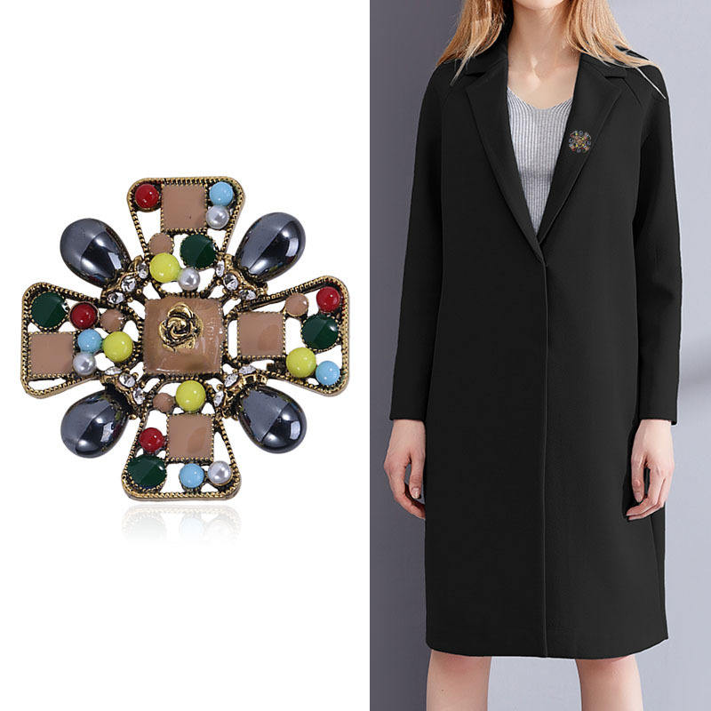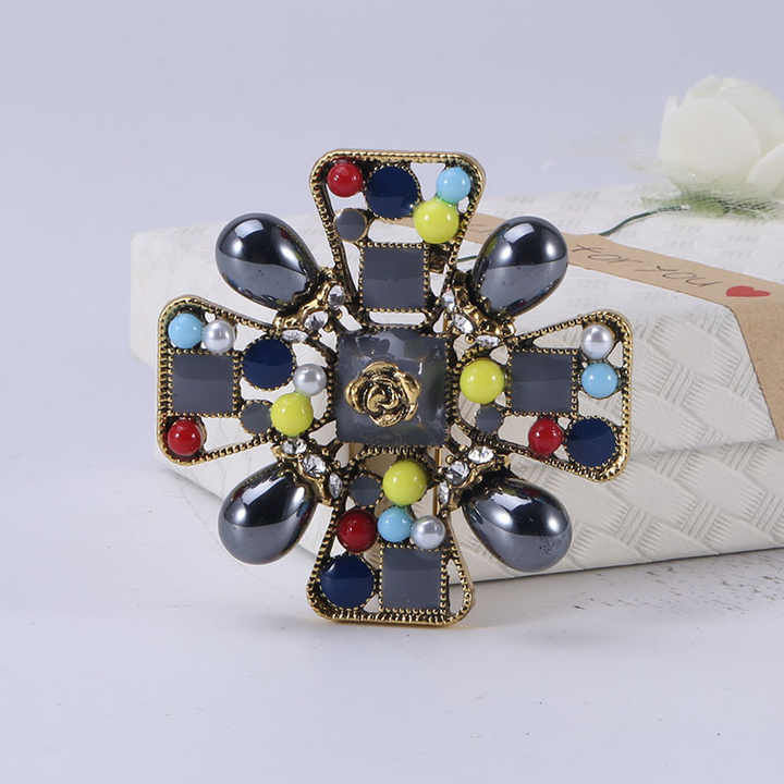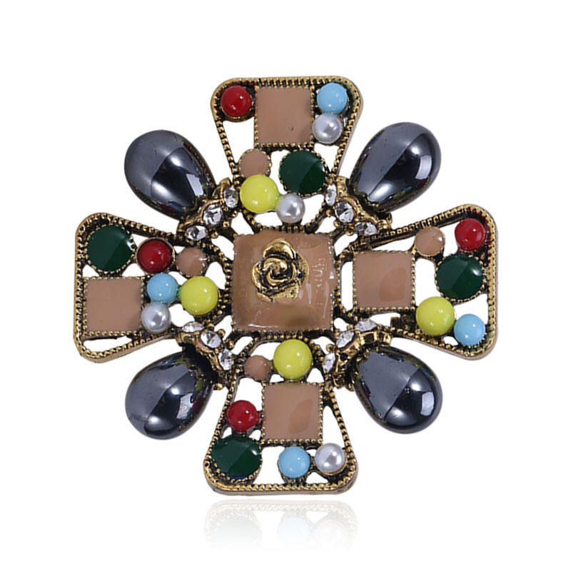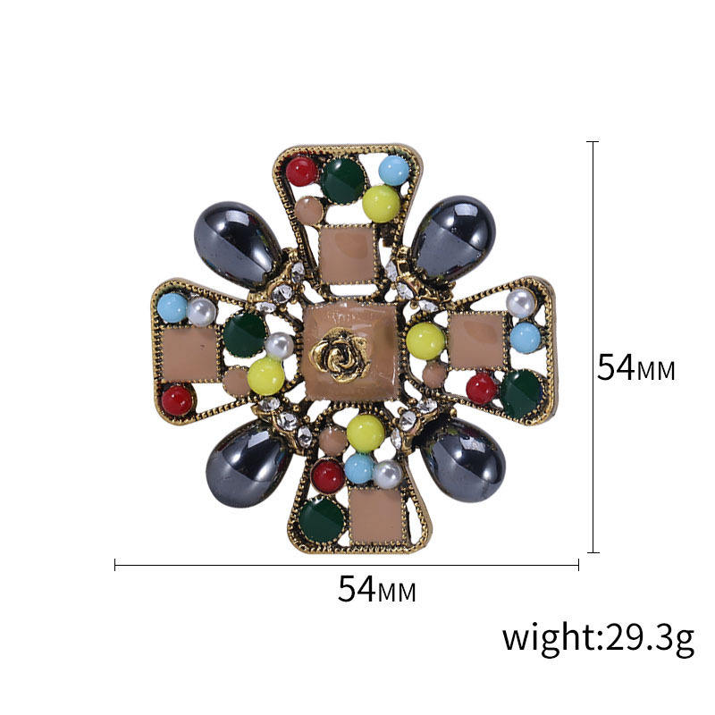 Broche Creativo Colorido con Cruz Hueca, Adornado con Diamantes de Imitación, Estilo Retro Vintage, Accesorio de Flor