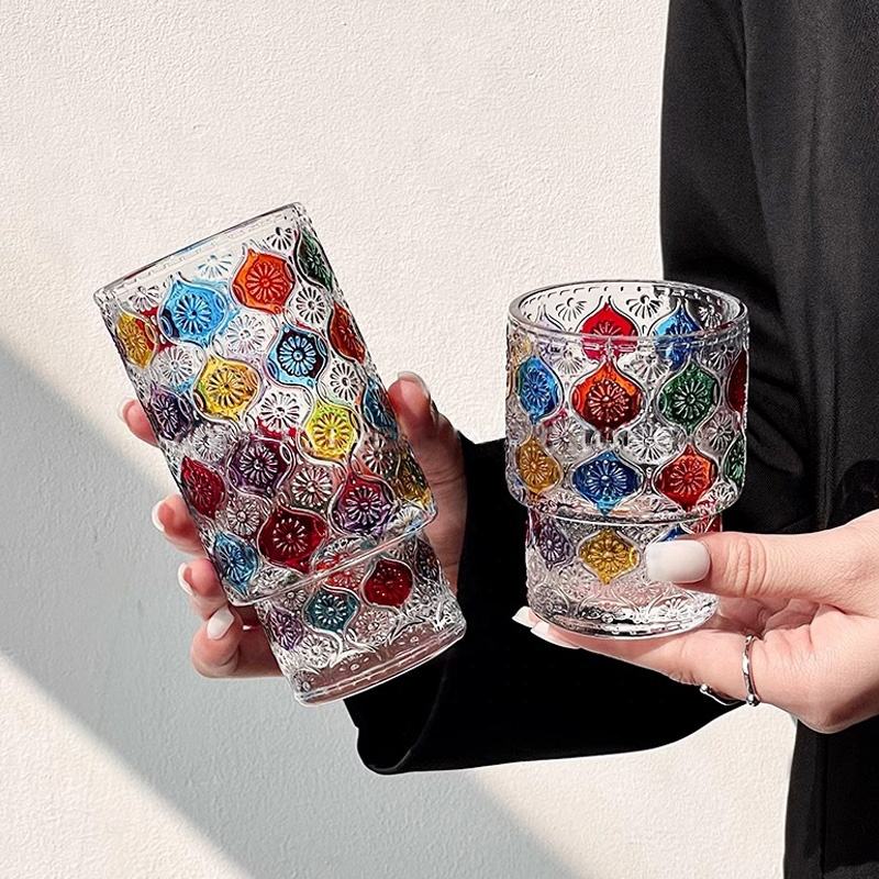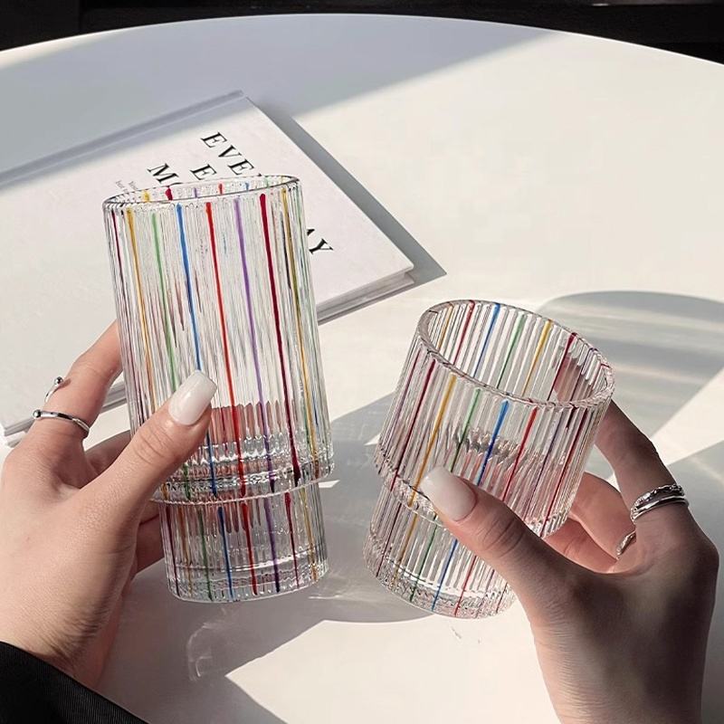 Creativo colorido rayado girasol en relieve vidrio Murano beber jugo taza vaso apilable diamante whisky vidrio