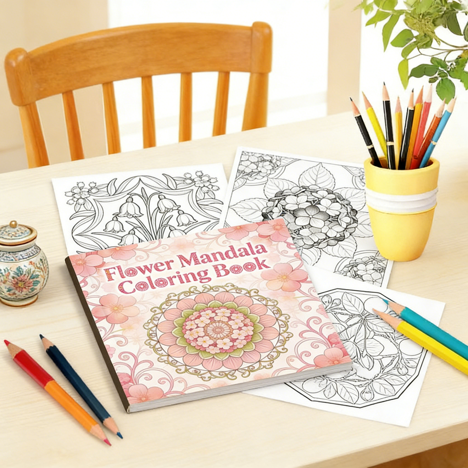 Cuaderno Creativo para Colorear Personalizado, Libro de Colorear Duradero con Diseño de Flores y Mandalas, Libro Impreso para Niños y Adultos, Regalo para Aliviar el Estrés