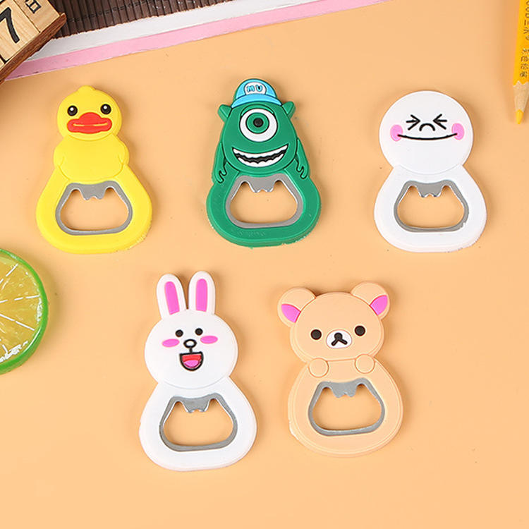 Abrebotellas de silicona de dibujos animados bonitos creativos, abridor de cerveza de PVC, destornillador con pegatina para refrigerador