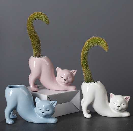 Creativo lindo gato de cerámica cola columna maceta Animal de dibujos animados suculenta mono cola Cactus maceta para vacaciones de Navidad