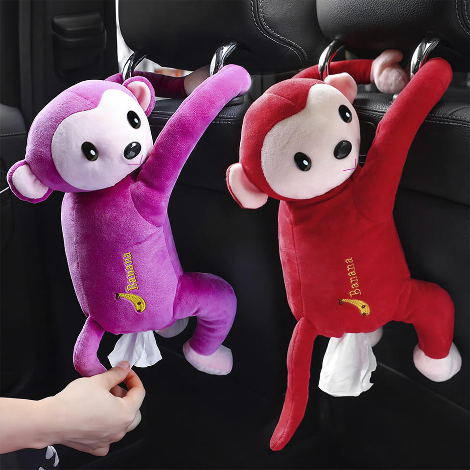 Caja de Pañuelos Creativa Bonita para Pippi Monkey, Asiento Trasero de Coche Colgante Extraíble de Felpa Súper Suave, Diseño de Dibujos Animados, Almacenamiento de Papel para Cumpleaños