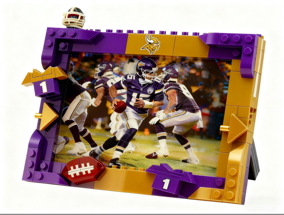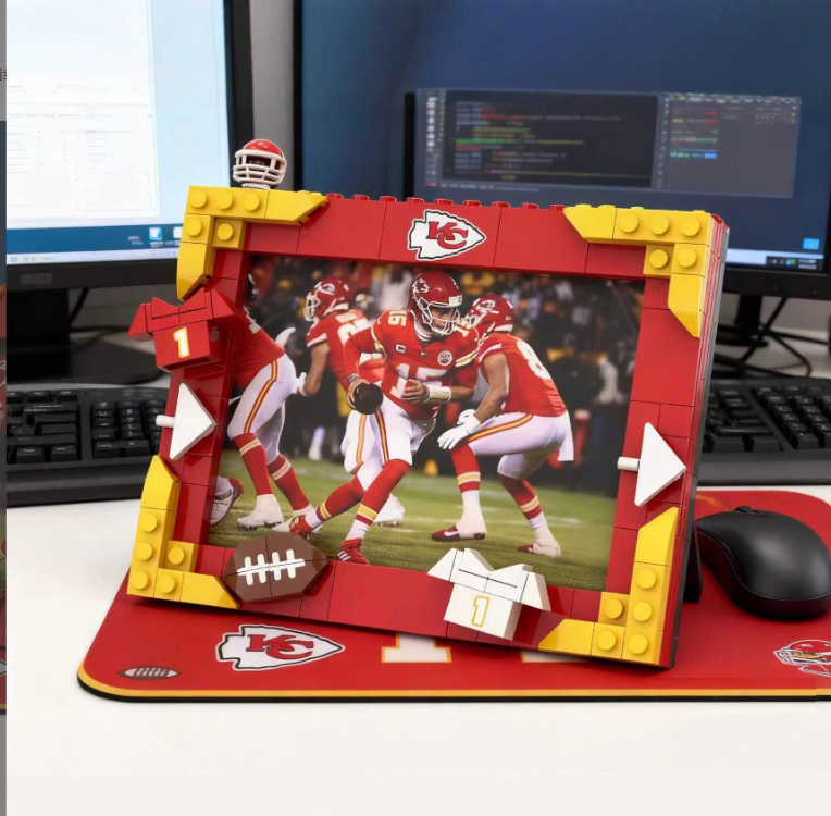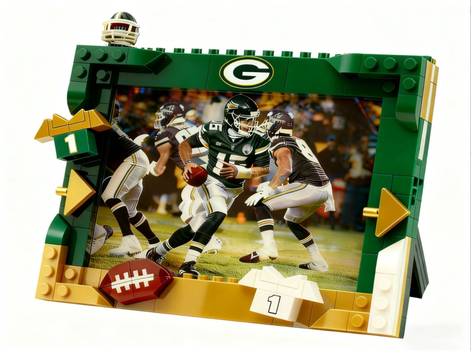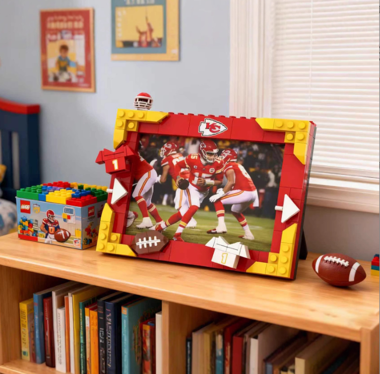 Marco de Fotos Creativo de Bloques de Construcción DIY Compatible con LEGO, Tema de Fútbol Americano para Exhibición de Ídolos