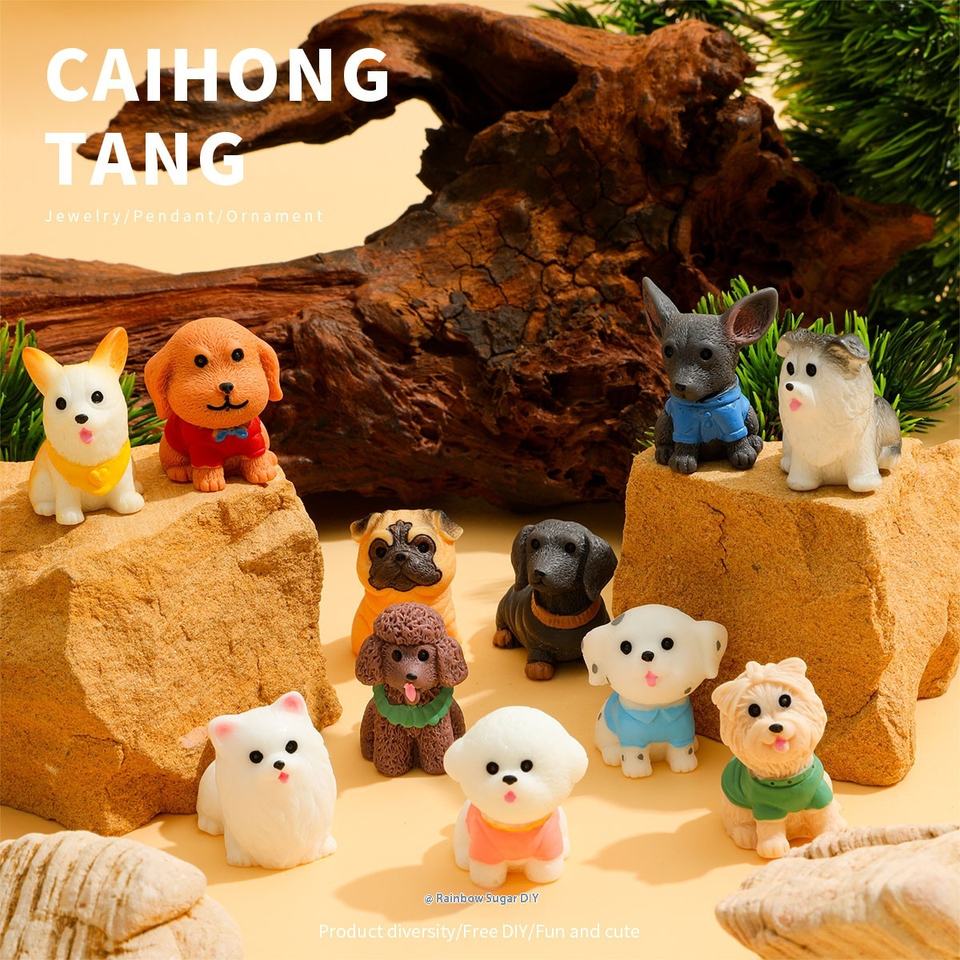 Accesorios creativos de resina DIY, colgante de cachorro de animal estéreo simulado, adornos de escritorio hechos a mano caseros para Navidad