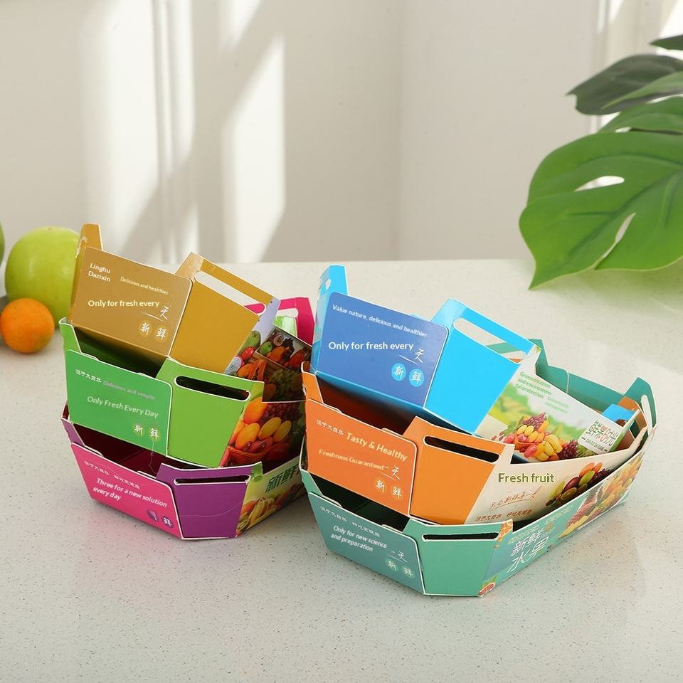 Caja de Embalaje para Frutas de Diseño Creativo con Tapa Portátil de Estilo Origami, Apta para Alimentos