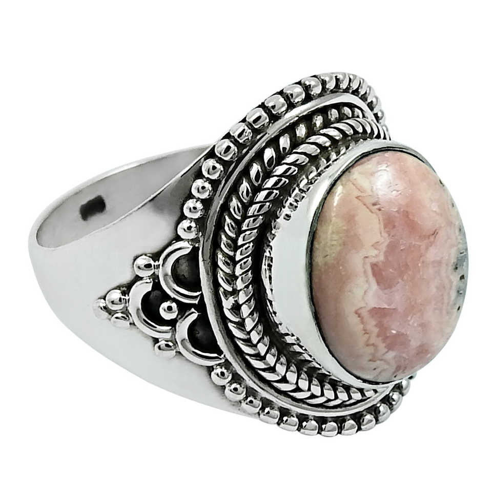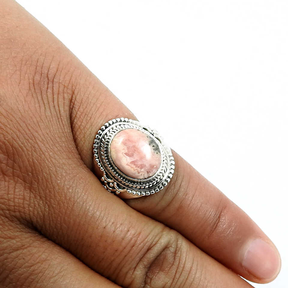 Anillo de Plata Ovalado de Diseño Creativo con Piedra Preciosa Rodocrosita, Anillo de Plata de Ley 925 Sólida, Joyería Fina para Regalo