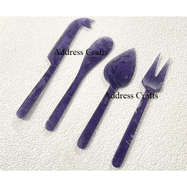Juego de cuchillos de queso de resina de diseño creativo indio hecho a mano cubertería de resina de Color personalizado tenedor esparcidor cuchillo de Punta herramientas de corte de queso