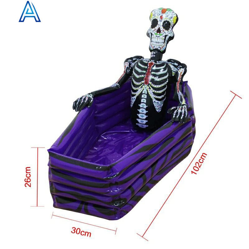 Diseño creativo vinilo PVC aire soplado inflable Halloween cráneo esqueleto cubo de hielo enfriador de hielo fiesta bebidas cerveza cola enfriador