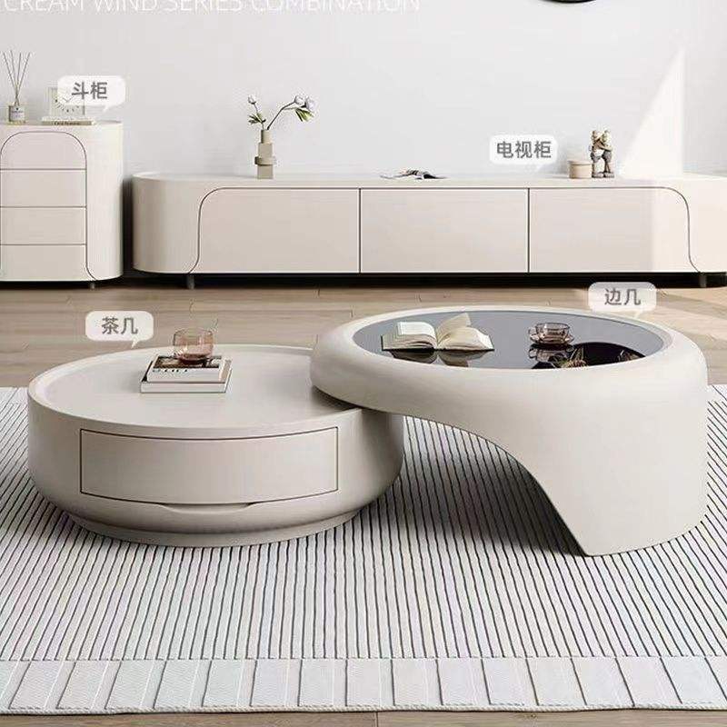 Juego de Mesa de Centro Redonda de Diseño Creativo con Tapa de Vidrio Templado, Muebles Modernos para Sala de Estar, Estilo de Lujo Ligero, Uso para Adultos